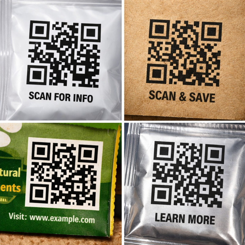 Hình ảnh: Cận cảnh các mã QR Code duy nhất, không trùng lặp, đang được in trên bề mặt bao bì sản phẩm