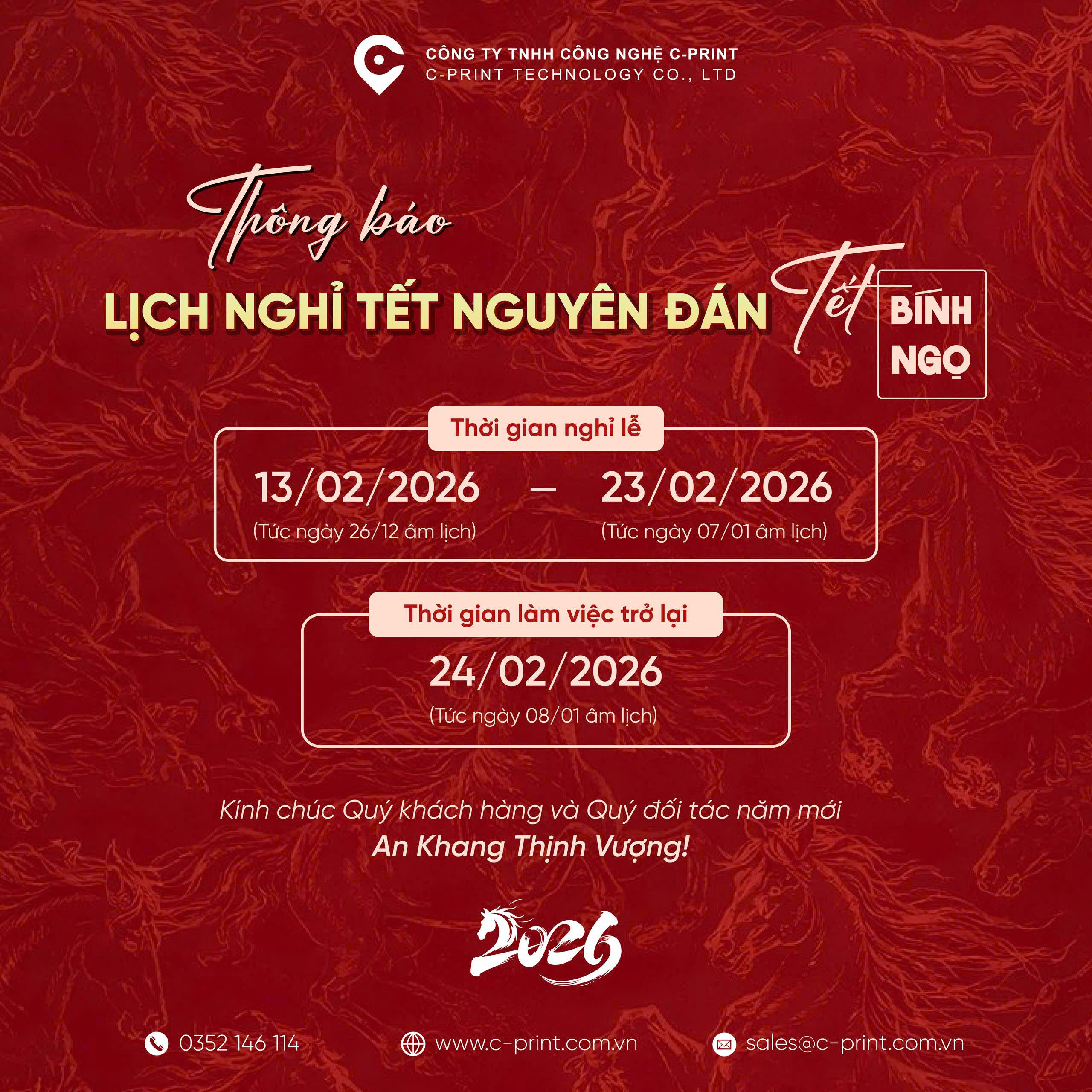 C-Print xin gửi đến Quý Khách hàng và Quý Đối tác thông tin về lịch nghỉ Tết Nguyên Đán như sau: