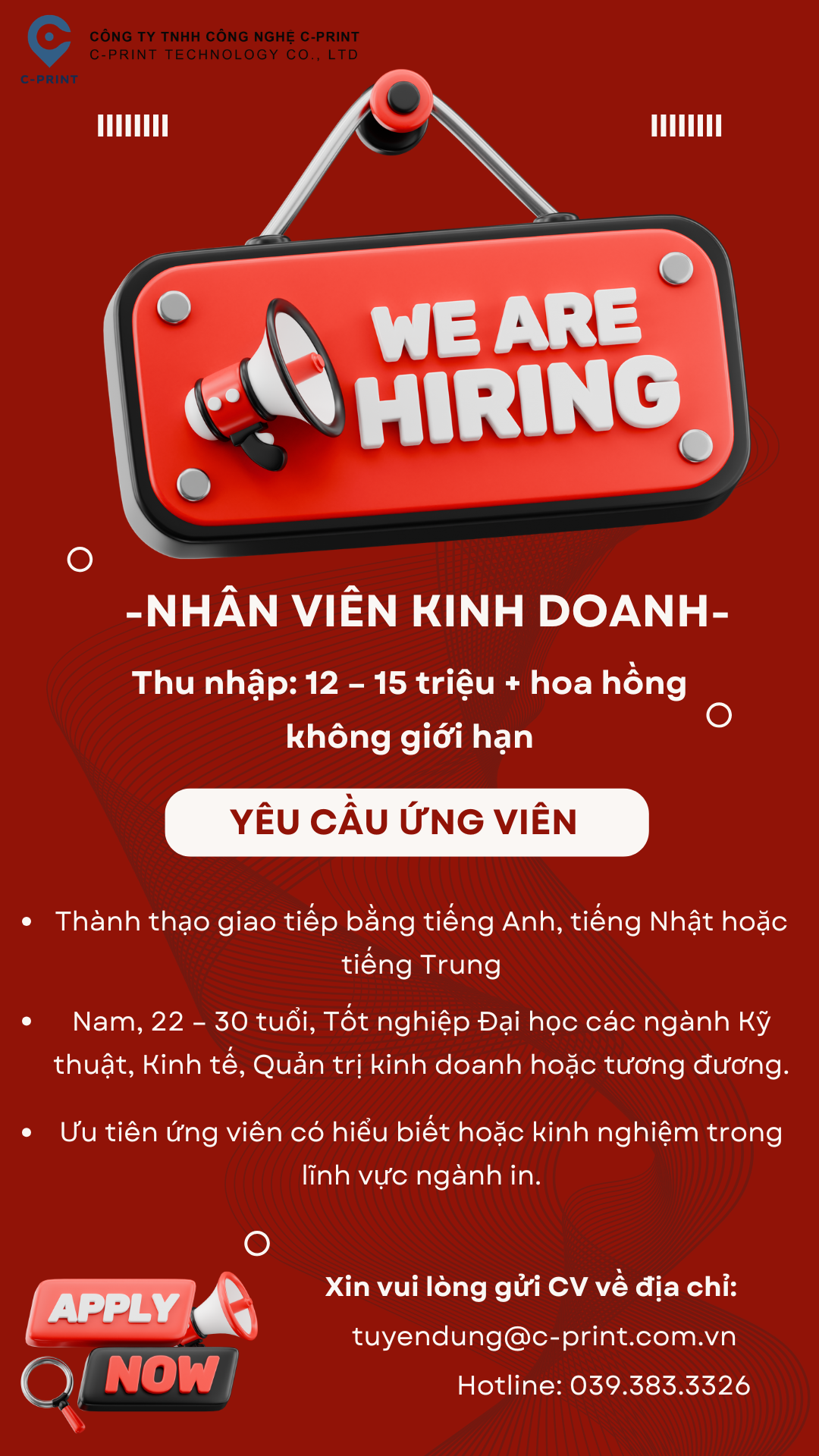 [TUYỂN DỤNG] NHÂN VIÊN KINH DOANH THIẾT BỊ NGÀNH IN